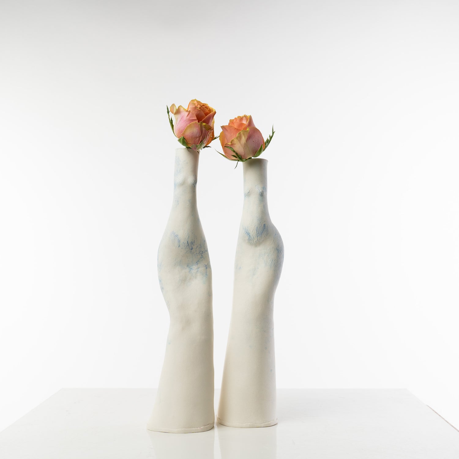David studied at Cardiff (formerly UWIC) graduating in 2001. He is based in Bristol & is a member of Westcountry Potters. David works in the medium of porcelain paper clay and stoneware; hand building figurative sculpture and vessels from sheets of clay. Formed by an innovative technique entirely his own, his work is highlighted with touches of glaze, precious lustres and metallic oxides. By manipulating the clay sheets from the inside to form the shape, the texture created by this method is integral and unique to every piece.