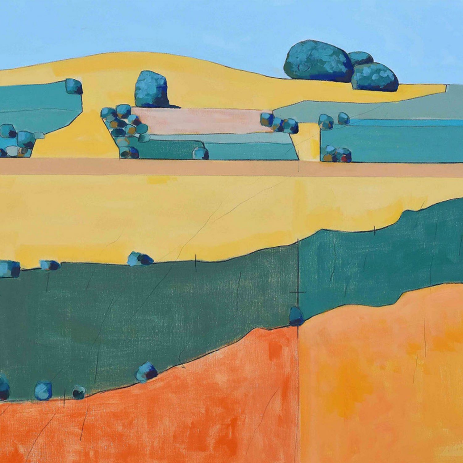 I want to create paintings which say without doubt….. “THIS IS WILTSHIRE”. The colours in my work are bold and striking, attempting to capture the memory of sun-drenched summer walks across the plain, along the Ridgeway to Avebury, across the undiscovered West Wiltshire Downs and down the Wylye Valley.