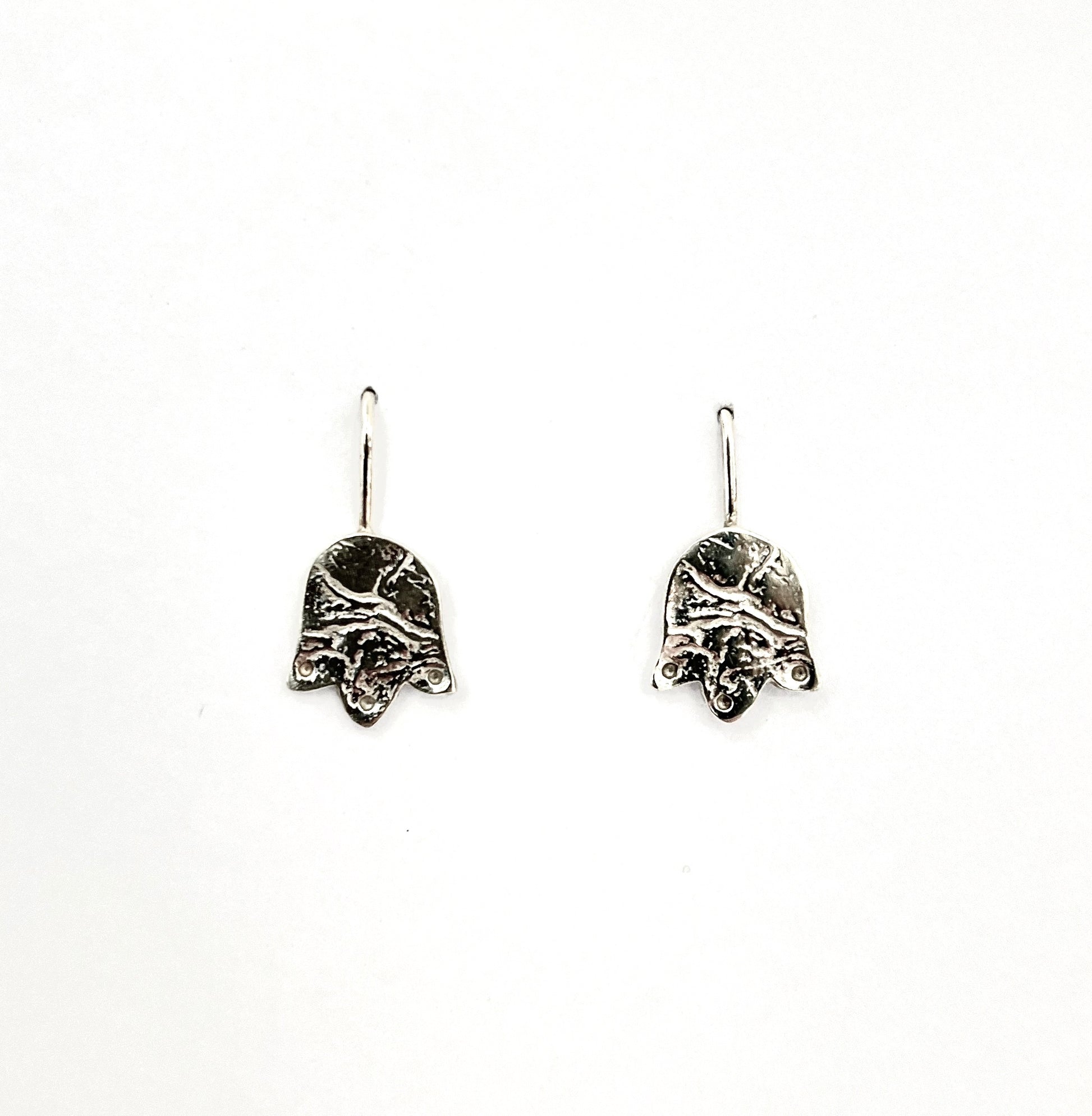 The length of the earring including the ear wire is 20mm and the widest point of the bell is 13mm. The ear wire is 0.9mm diameter silver wire.