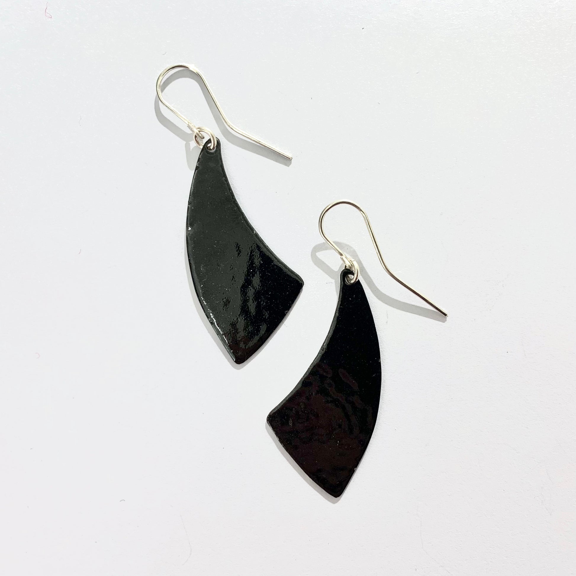 The earrings are enamelled copper with sterling silver ear wires. Length from top of ear wire approx 5cm.