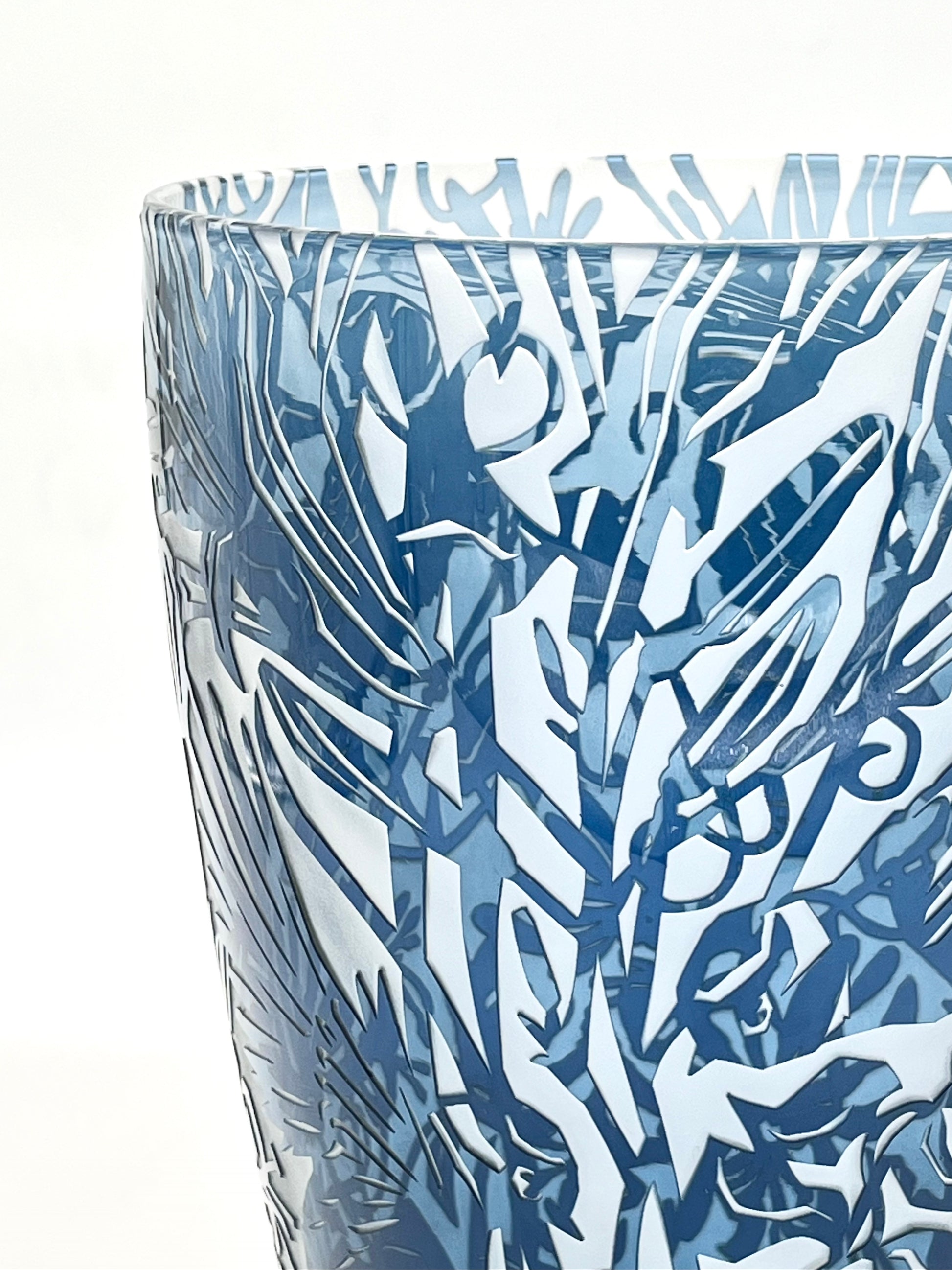 Louise has created an exquisite sand carved piece featuring the blue tits flying amongst honeysuckle. The intricacy of the design is incredible, making this piece an absolute showstopper.