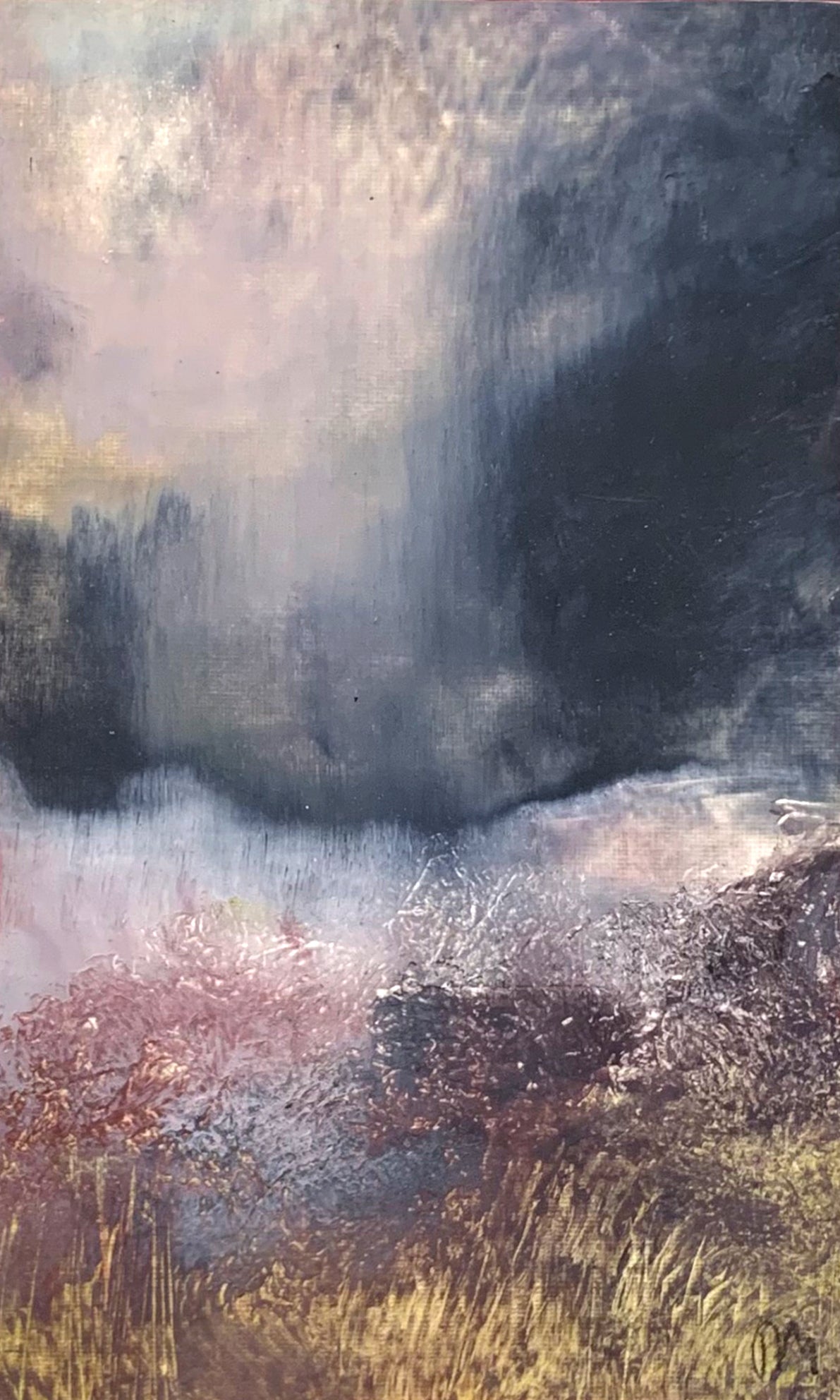 Big and tiny decisions are made as I lay down to paint, manipulating brush and knife with the rush of sea, shift of sand and scud of cloud. Solid rock is created with impasto, horizons and shorelines lost and found as glazes ebb and flow. There’s such satisfaction in laying down and taking off layers of paint to veil and unveil earlier colours and marks. There is alchemy in conjuring space and shape, sharpening or blurring with spells of indigo, cobalt, manganese and iron oxide.