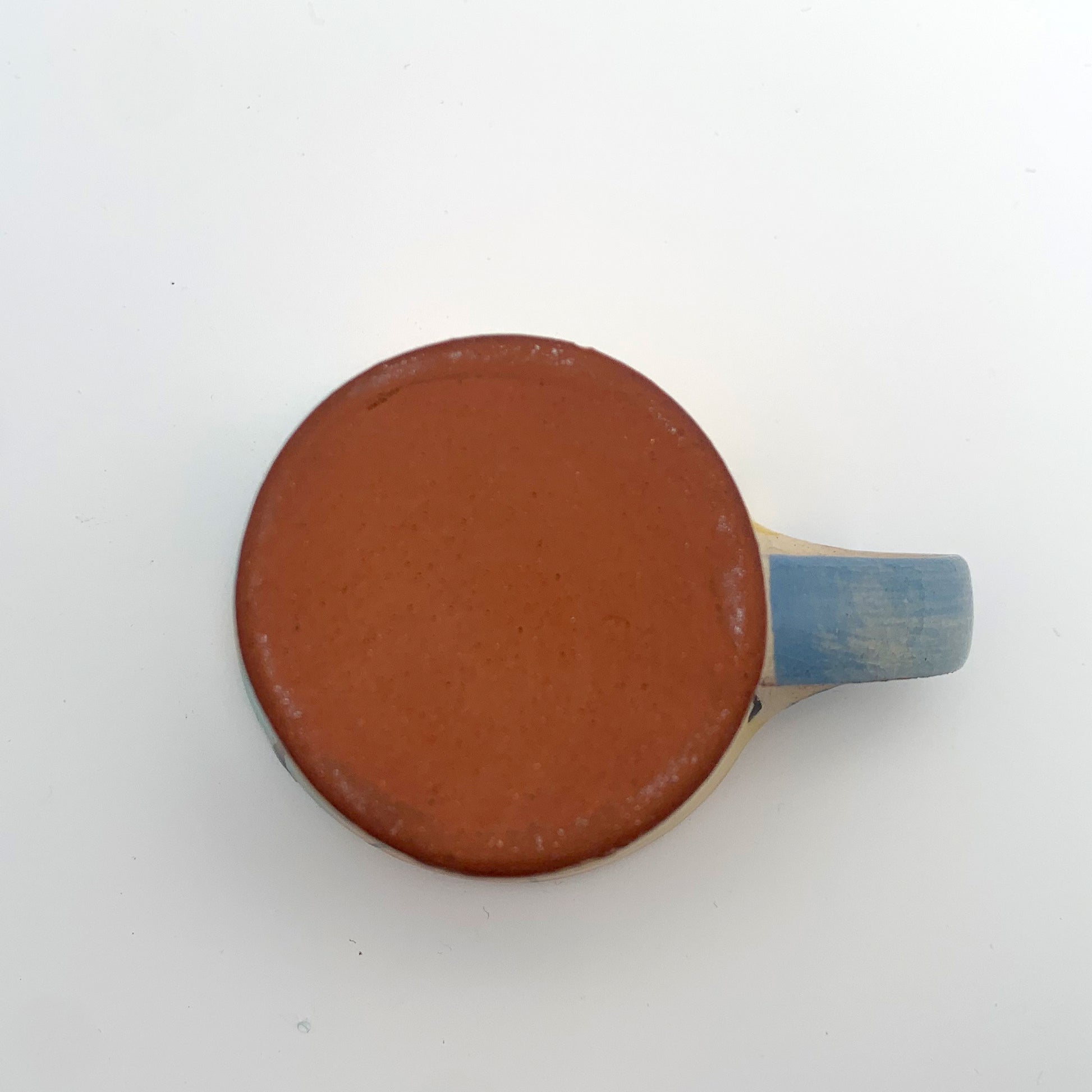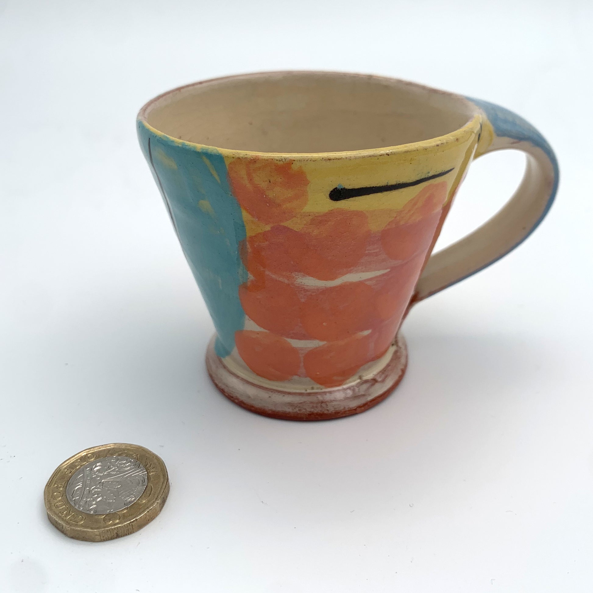 This espresso earthenware mug by Richard Wilson is wheel-thrown and decorated with wonderful brightly coloured slips. The gorgeous gestural marks using different brushes create an abstract design, inspired by the ebb and flow of the sea at West Bay.