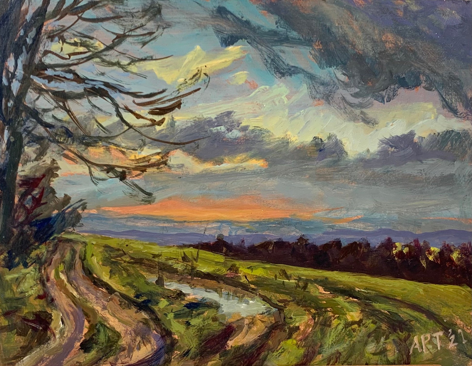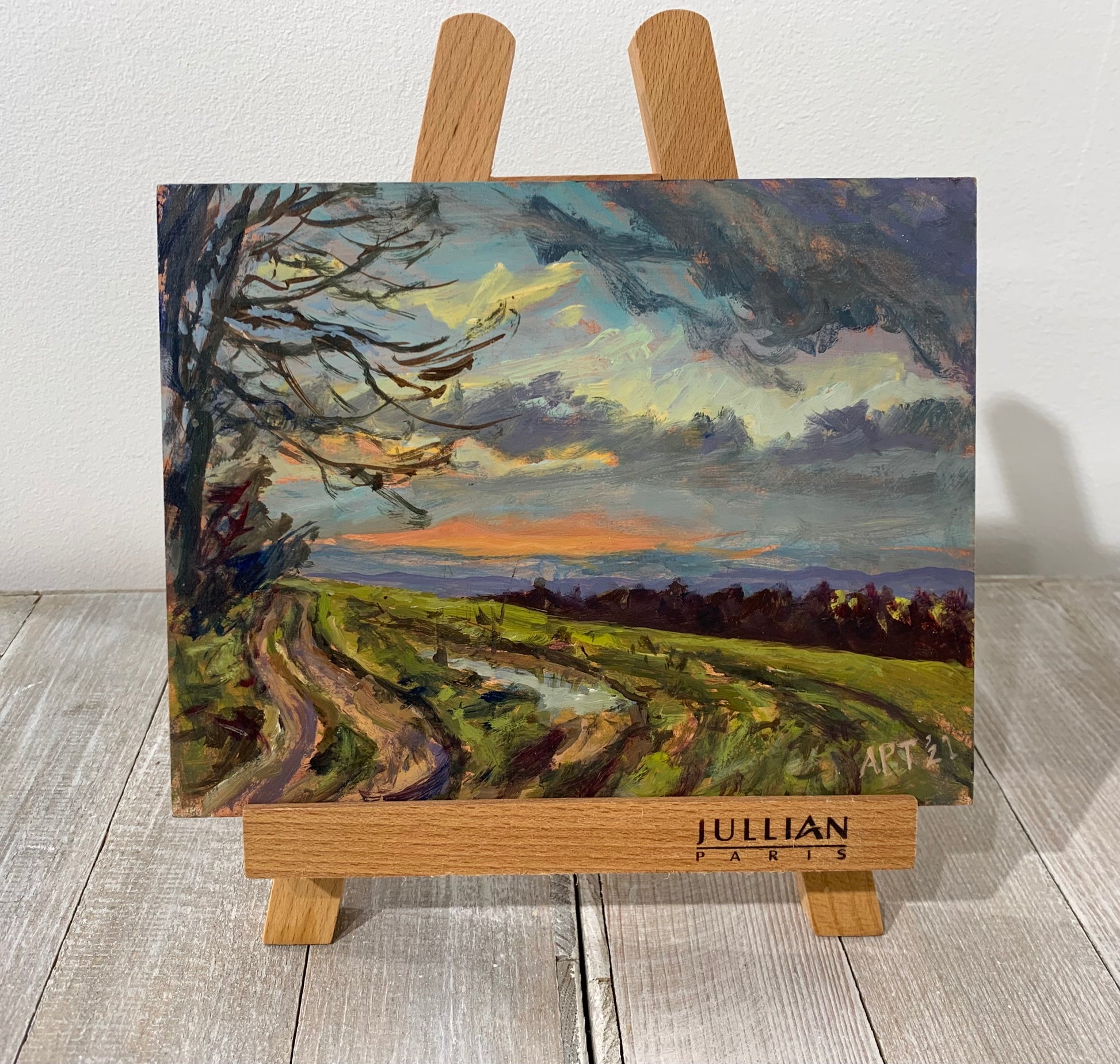 'I particularly love to paint ‘en plein air’, in the landscape; painting predominantly with oils on gesso primed wood-panels or canvas. Working in this spontaneous manner, there isn’t time to consider things in a conscious way – it is an instinctive way of painting, reacting spontaneously to the changing weather and light. It can be very surprising how things turn out.