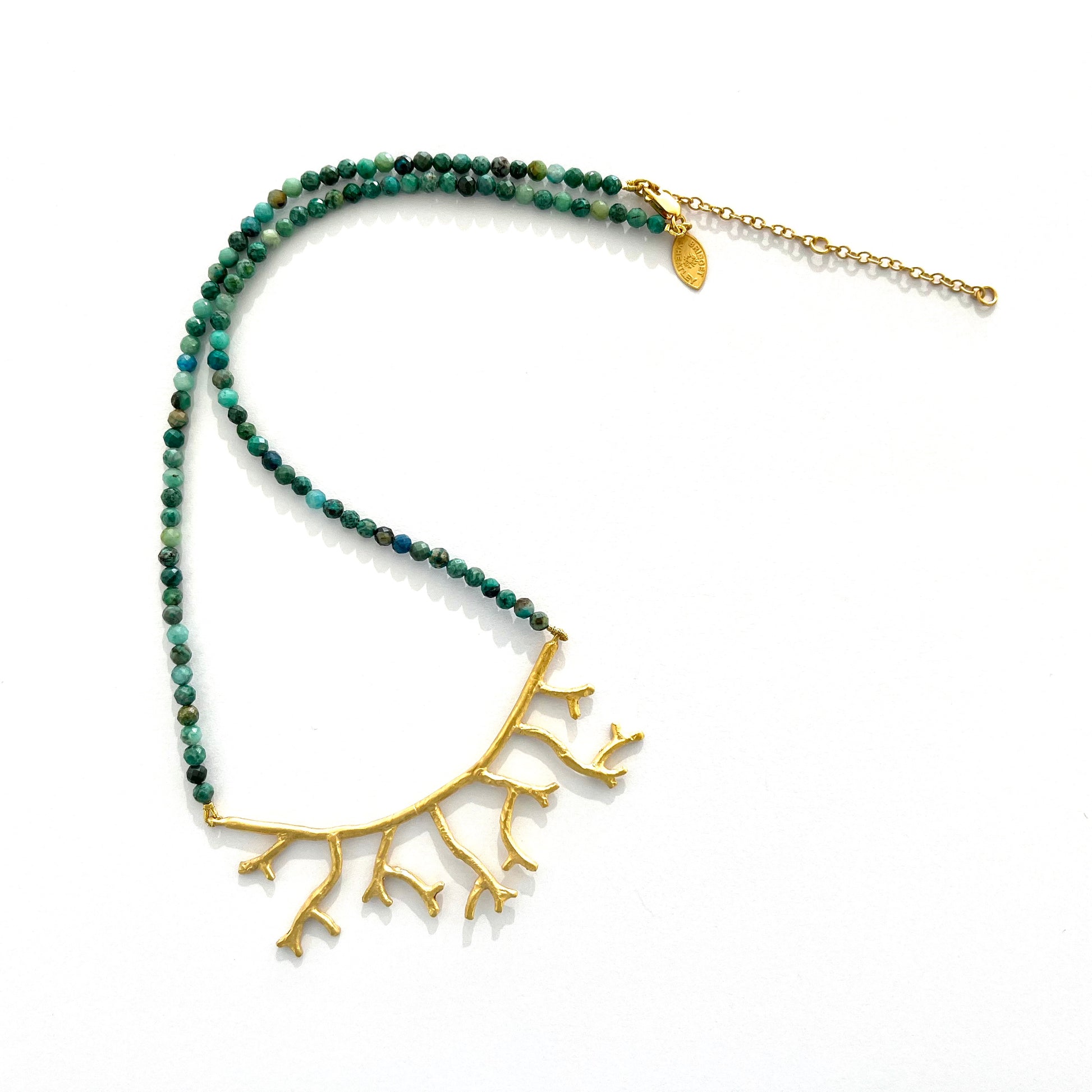 Gold Plated Silver Twig & Chrysocolla Beaded Necklace