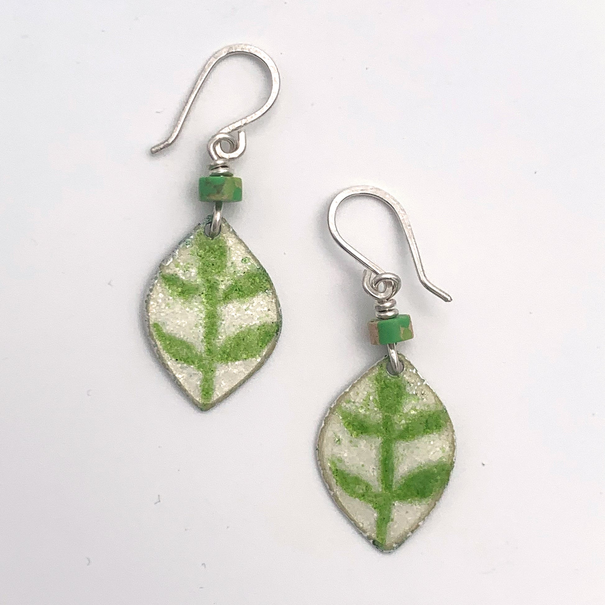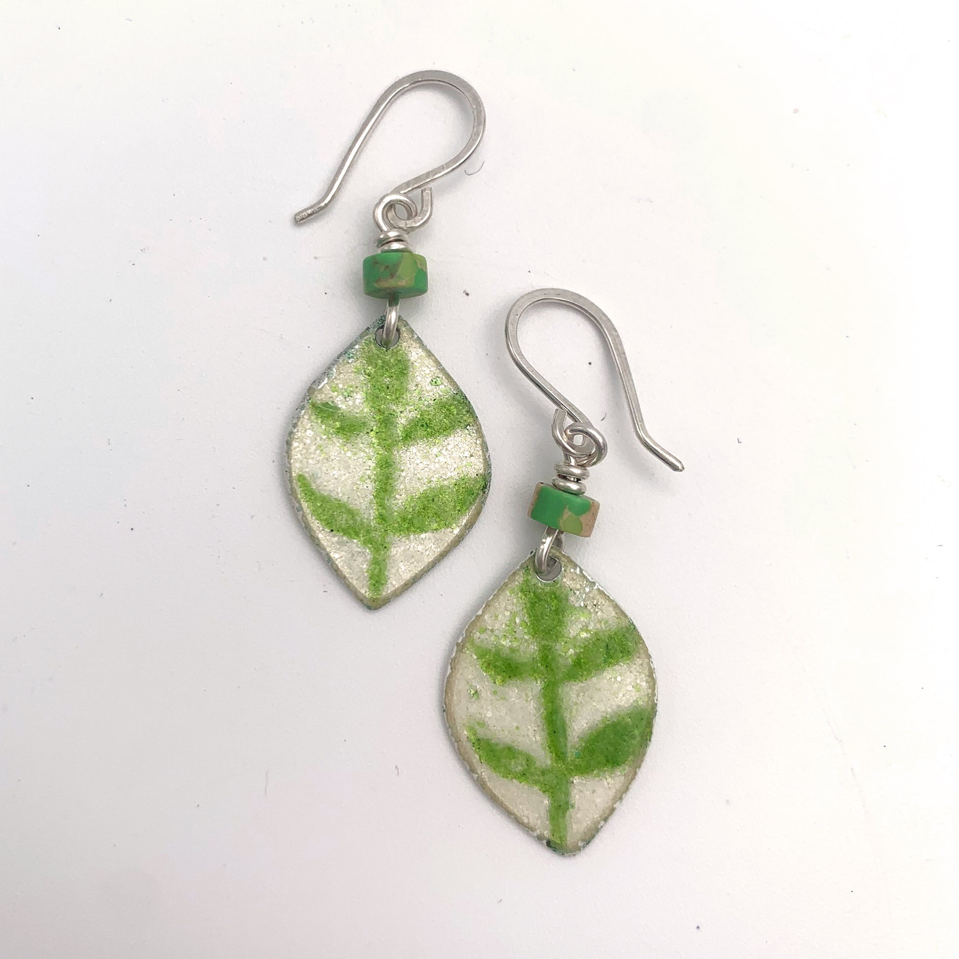 Green Leaf Enamelled Earrings