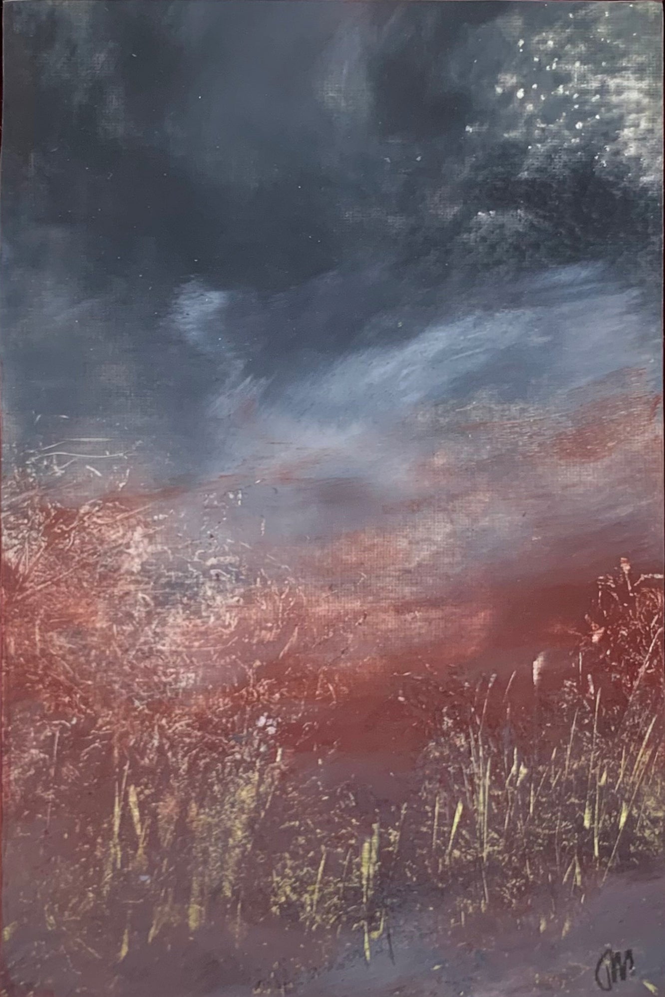 More recently I have returned to my home landscape to revisit favourite places, to sit and stare and to distil something of the essence of the place in quick, rough sketches. Much of my current work is about Wiltshire’s ancient stones and burial sites. Rather than recreating a view, my work disrupts the purely picturesque, allowing me to express the experience of being in the landscape.