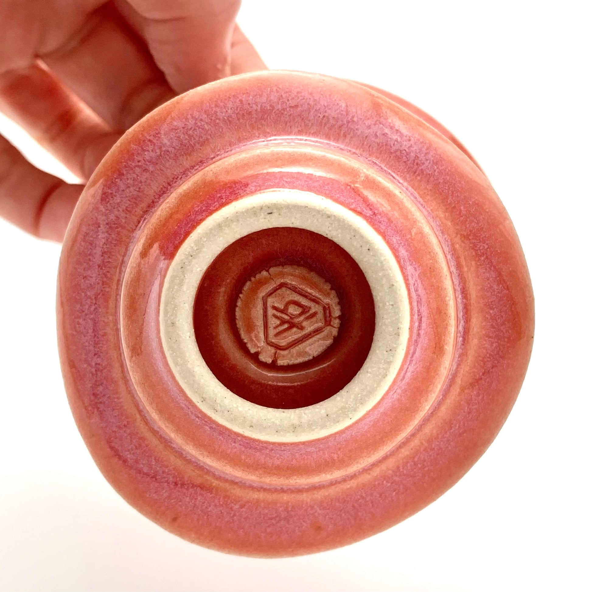 A pink dancing bowl by Jaroslav Hrustalenko. This gorgeous little bowl is perfect for nibbles and echoes the movement of a dancers skirt swirling. It is so much fun with a luscious pink glaze.