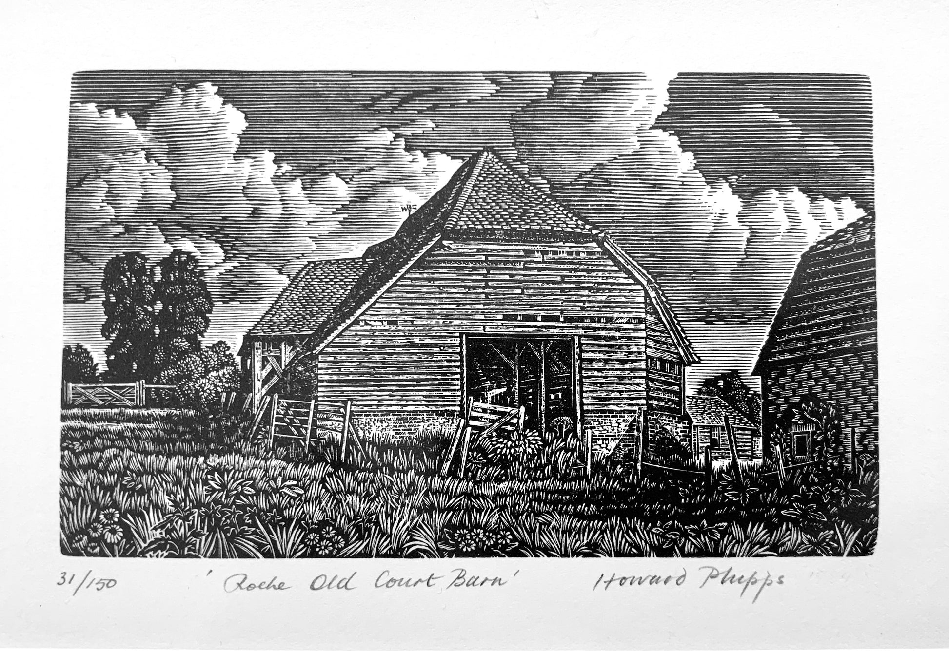 'Roche Old Court Barn' Wood Engraving