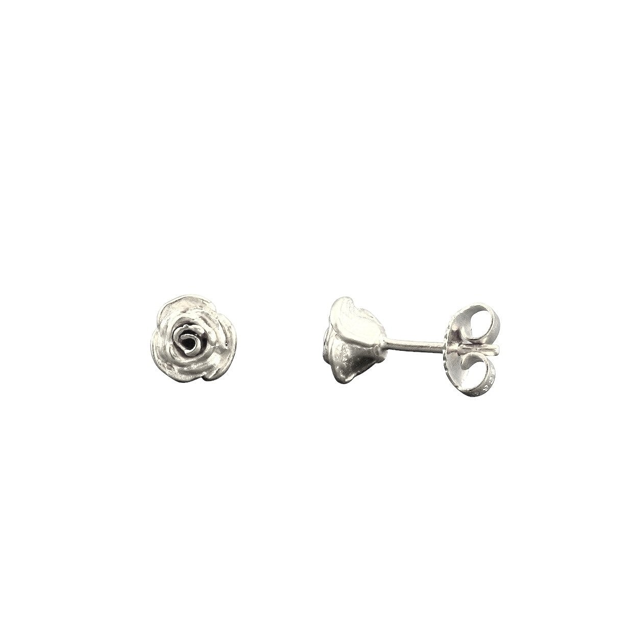 Pretty rose bud earrings by Bridget Wheatley. The sterling silver rose bud is three-dimensional with lovely detail underneath.