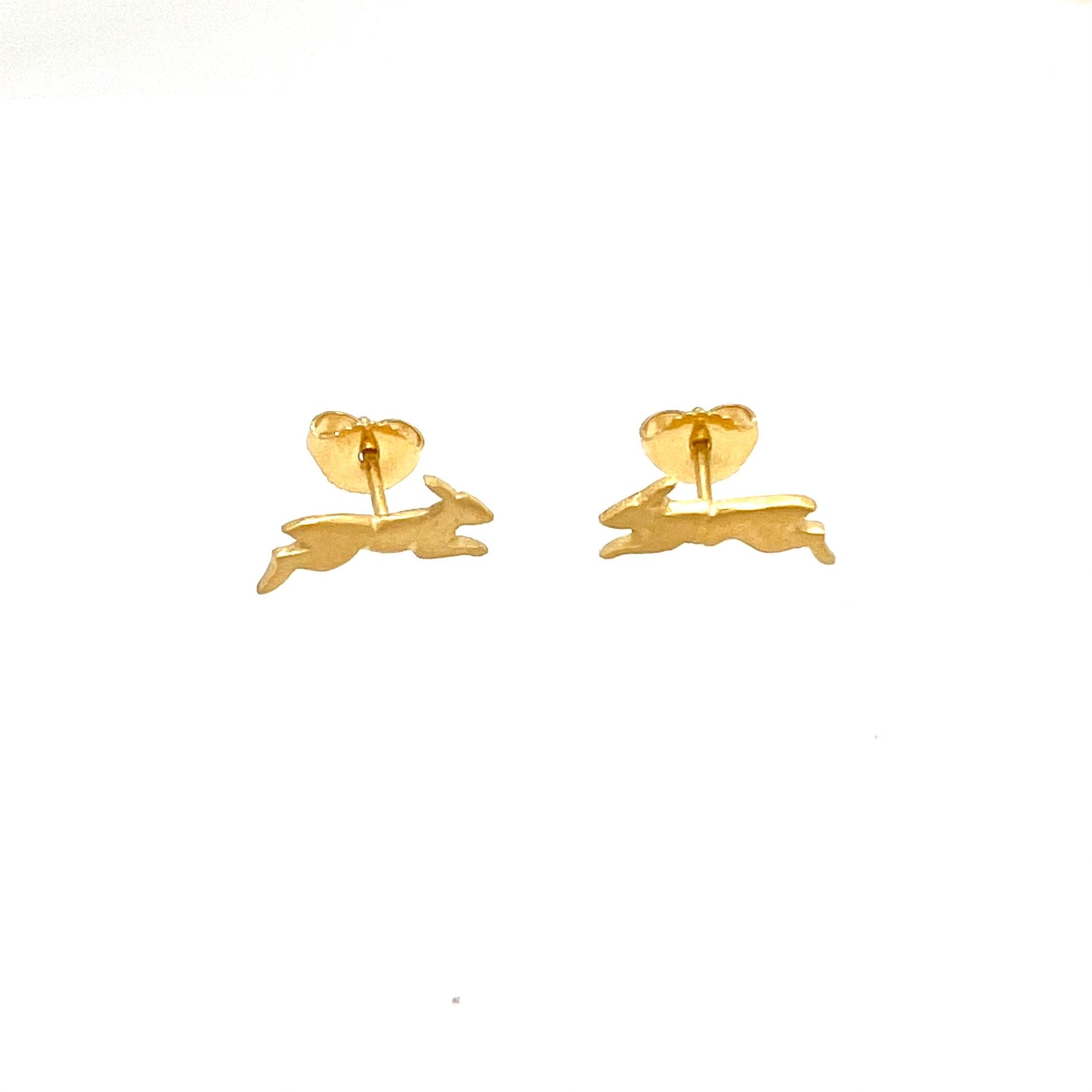 Running hare studs made from sterling silver with a very good quality gold plate (5 microns hard gold plate). Handmade by Bridget Wheatley.