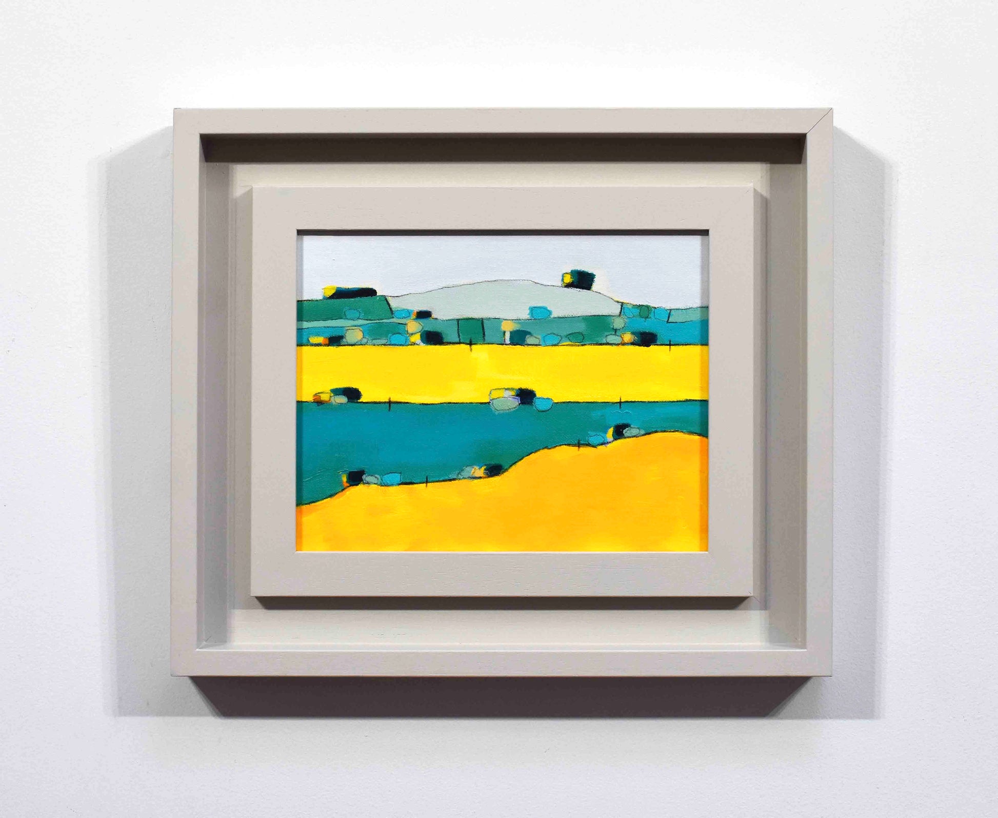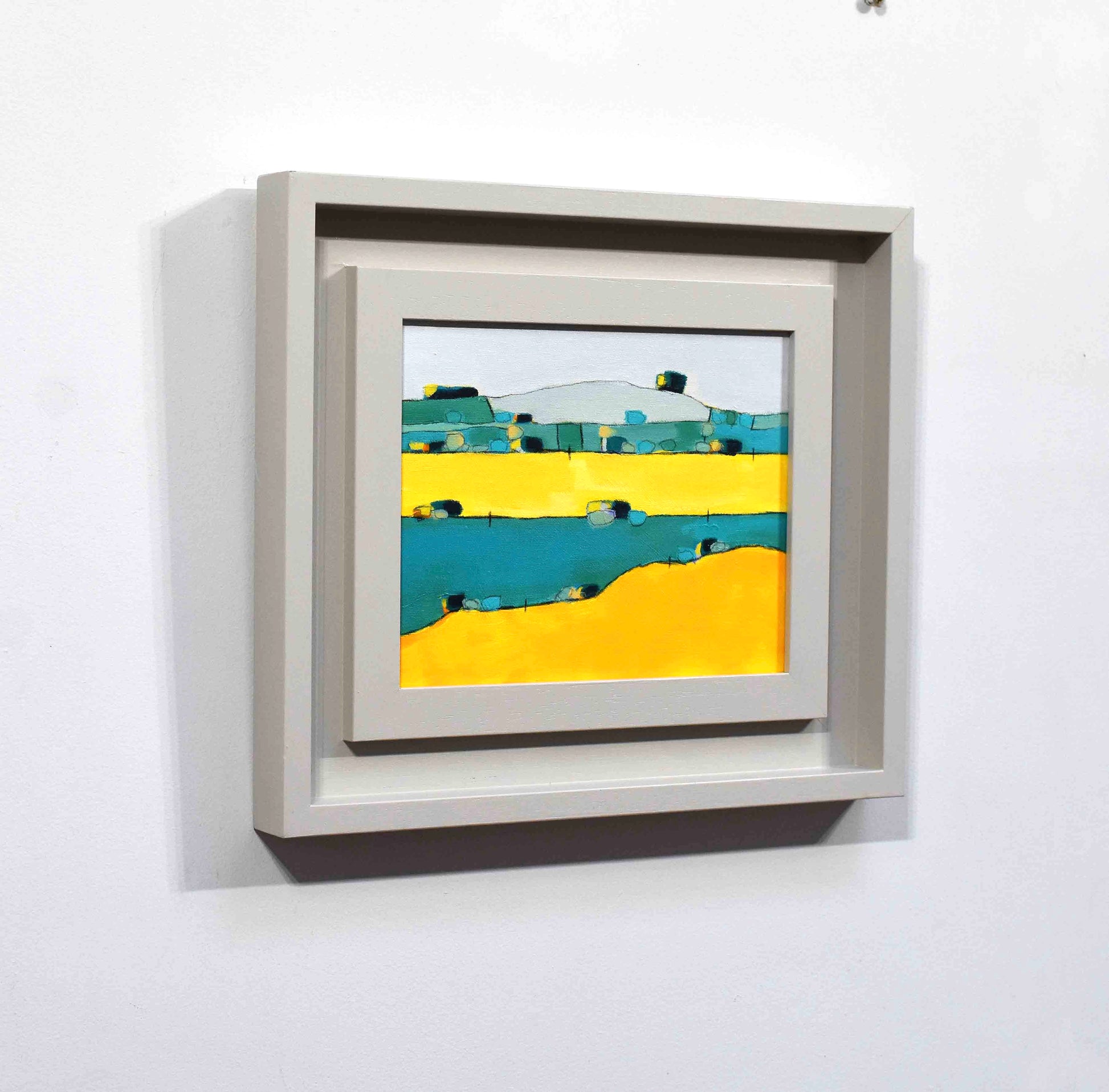 Colour and pattern are what excite David as he tries to create a balance between what he sees, what he recollects and the wish to construct something more than simple representation. There is always a tension between the flatness of the canvas and representation. He has been exploring combining aerial perspective with topographical views.