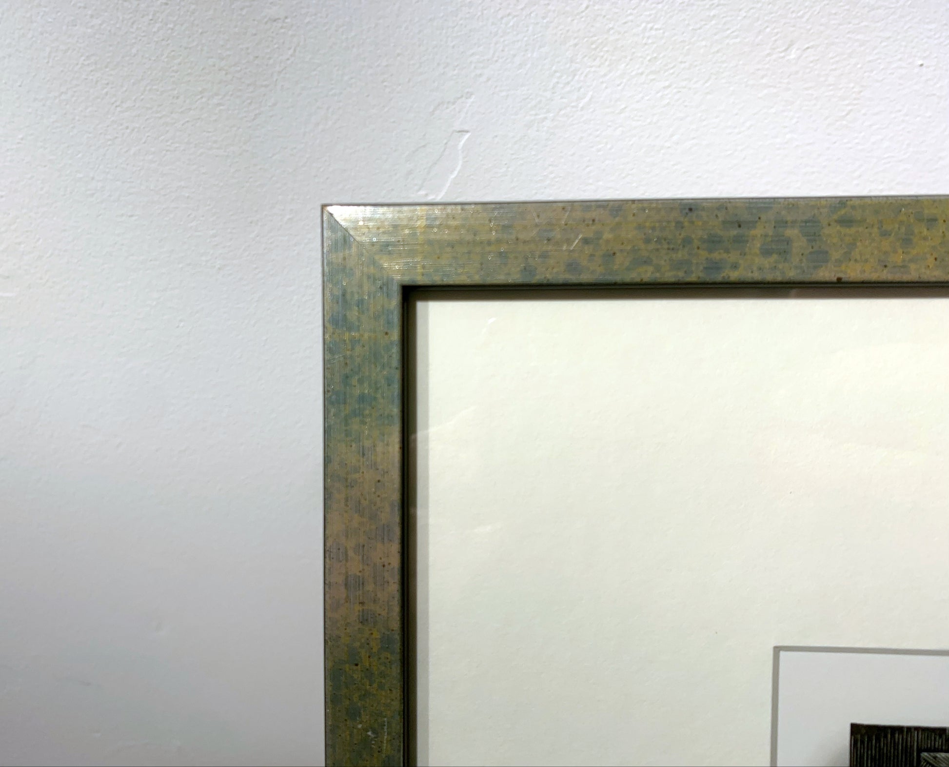 The beautifully intricate engraving itself measures just 10cm x 12cm. It is framed in a mottled metallic frame.